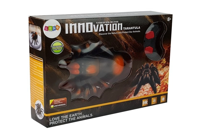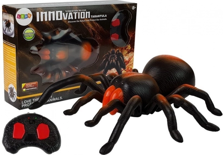 De reusachtige zwart‑oranje tarantula lijkt op het eerste gezicht levensecht. Gemaakt van hoogwaardige kunststof, met gedetailleerde texturen, lichtgevende ogen en vloeiende pootbeweging. Op de infrarood‑afstandsbediening vind je twee grote knoppen: één voor vloeiend vooruit rijden en één voor snel rechtsom draaien. Perfect om thuis mee te spelen, op feestjes of als griezelige decoratie.