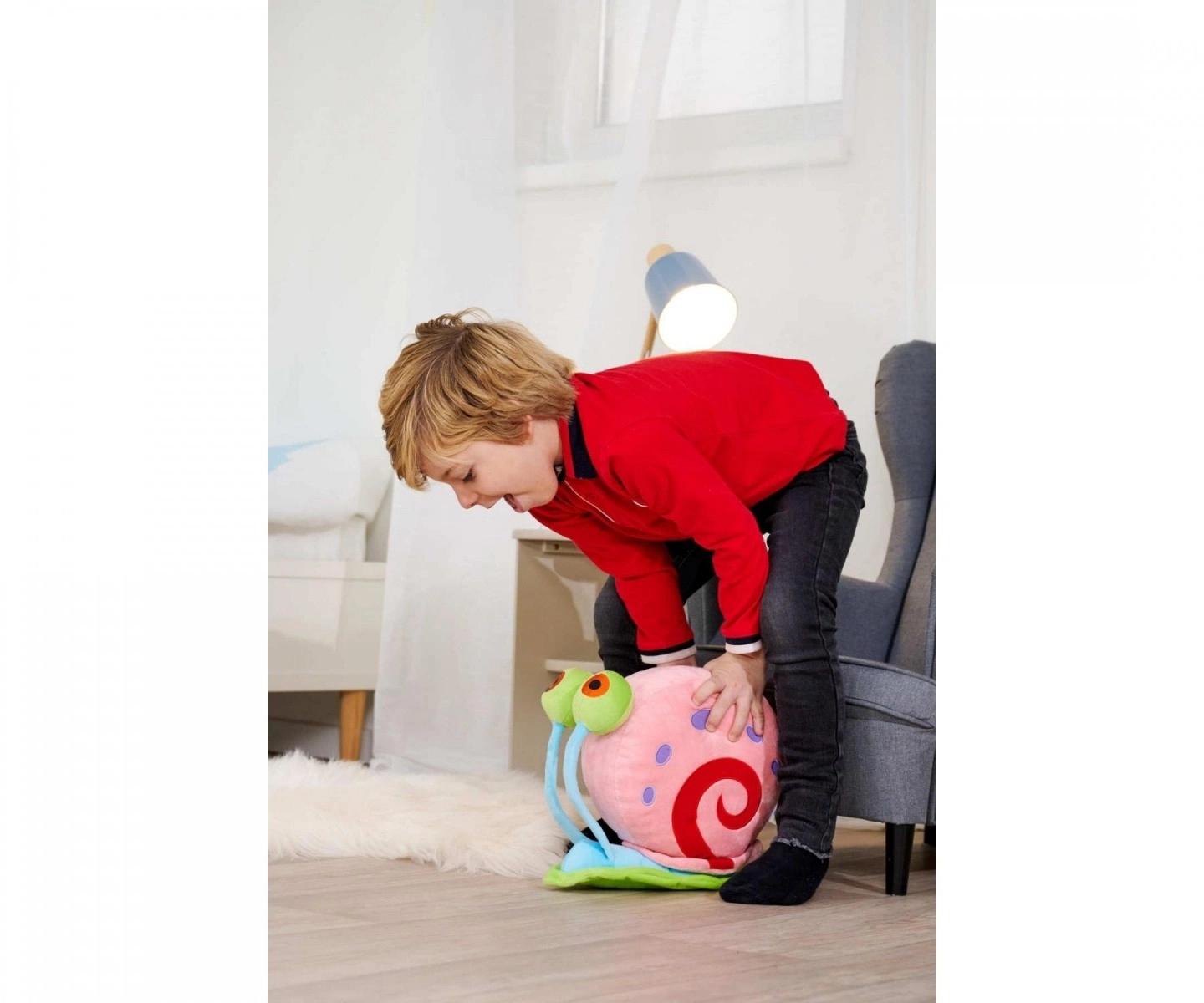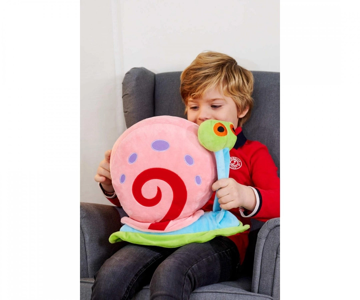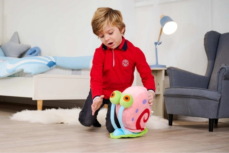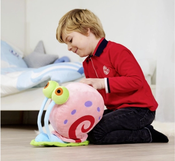De geliefde huisgenoot van SpongeBob, slak GARY, komt als een luchtige pluchen knuffel met opvallende kleuren, grote ogen en een fluweelzachte oppervlakte. Dankzij het aangename materiaal is hij ideaal voor rustgevende knuffels, spelen thuis en als decoratie in de kinderkamer.