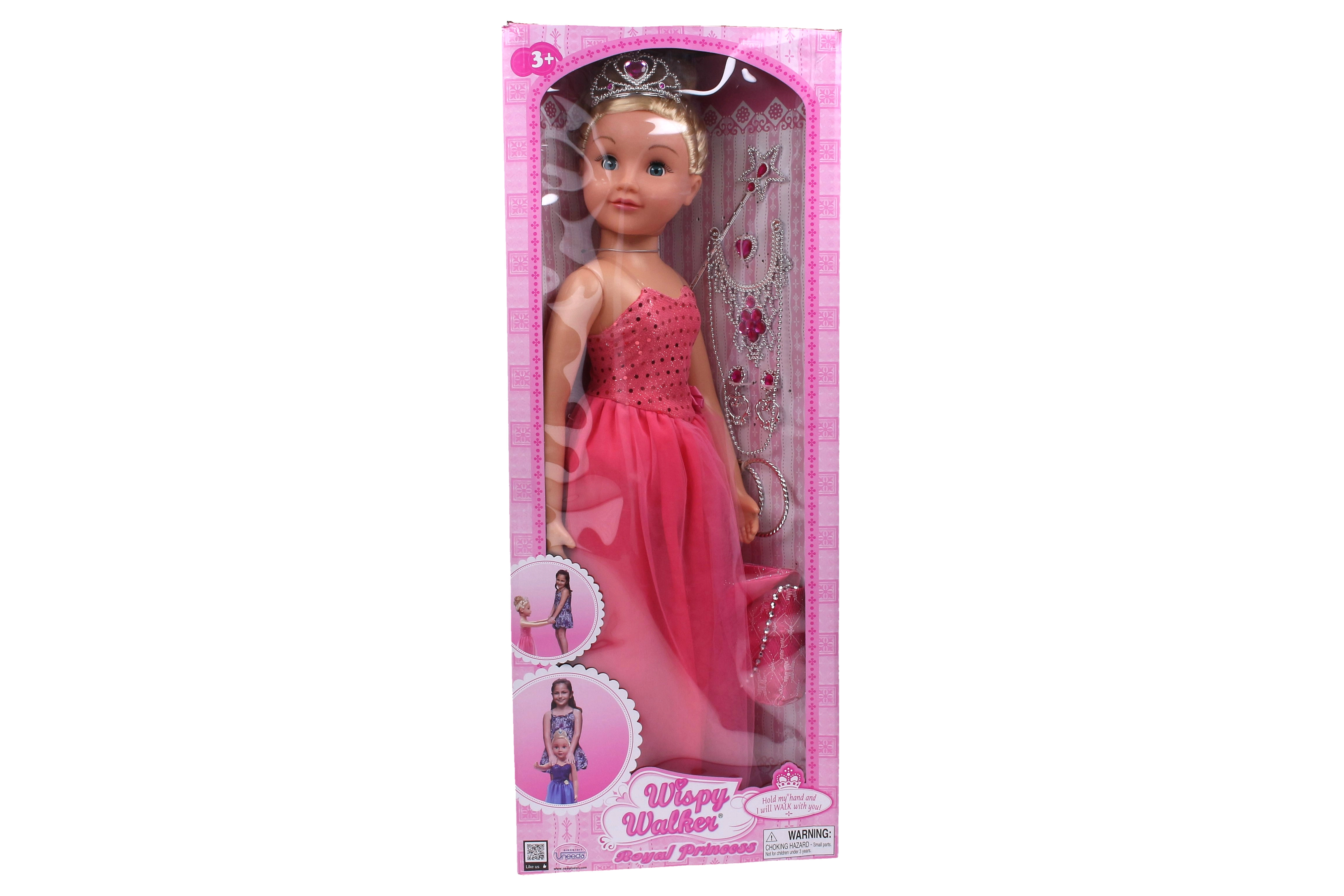 Een betoverende lopende prinsessenpop zal elke kleine dame blij maken. Dankzij de hoogte van 70 cm oogt ze realistisch, ze heeft knipperende ogen en in de set zitten sieraden voor de prinses voor nog leuker speelplezier.