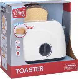 Compact tosti-ijzer met afmetingen 17 × 9,2 × 16 cm, ideaal voor het snel bereiden van knapperige toasts in kleine keukens. De bediening is intuïtief: hendel rechts om de toast in te schuiven, timer met draaiknop om de roostertijd in te stellen en automatisch omhoog springen na afloop.