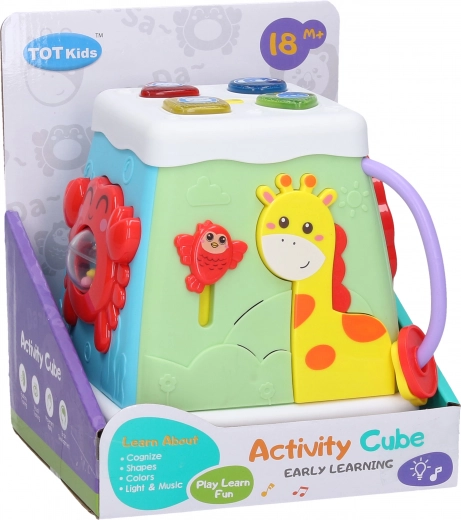Deze interactieve kubus biedt kinderen volop prikkels en plezier. Dankzij de licht- en geluidseffecten ondersteunt hij de ontwikkeling van zicht, gehoor en coördinatie, terwijl het compacte formaat van 13 cm perfect in kinderhandjes past. Met de aan/uit-knop kunt u de effecten eenvoudig in- of uitschakelen.