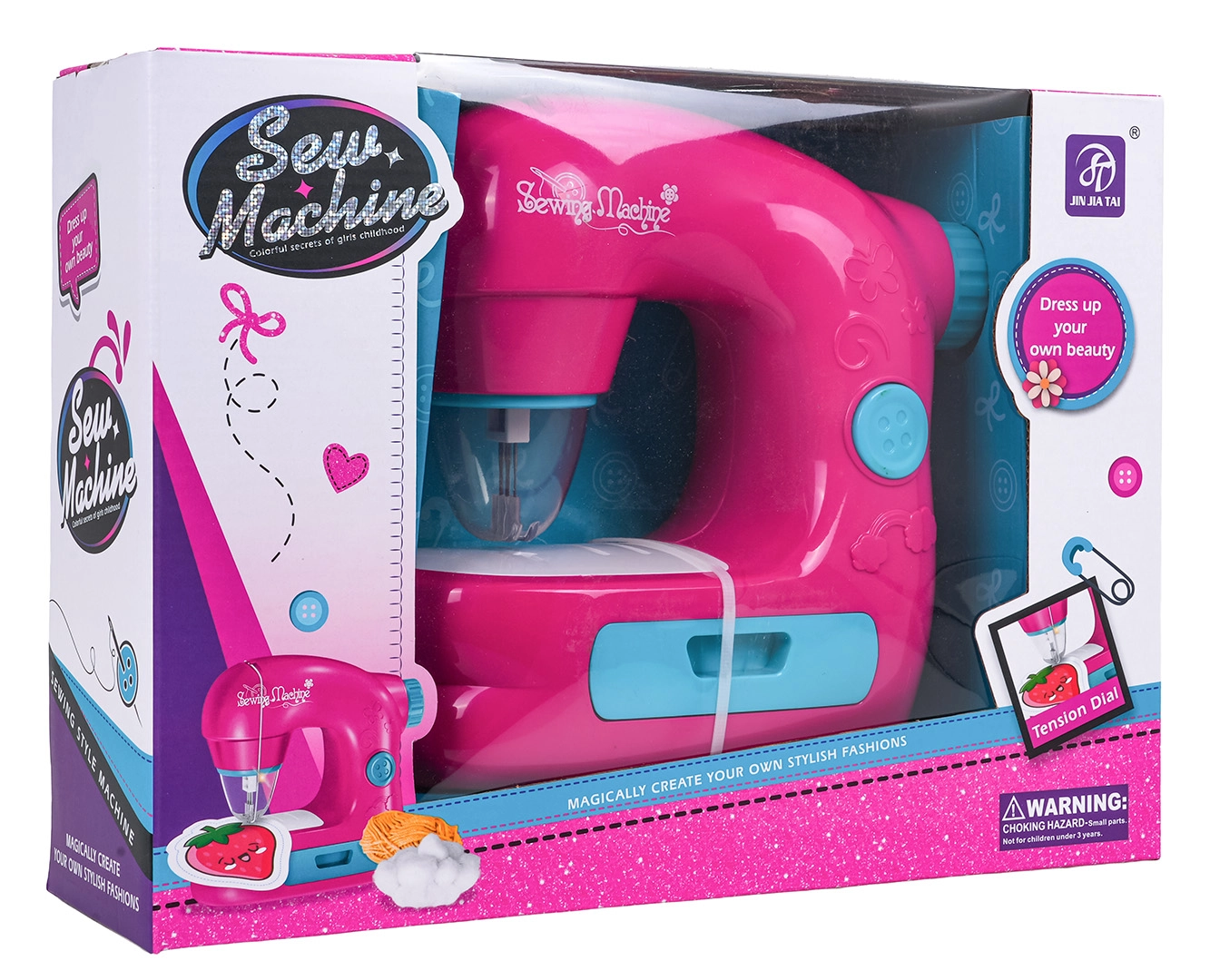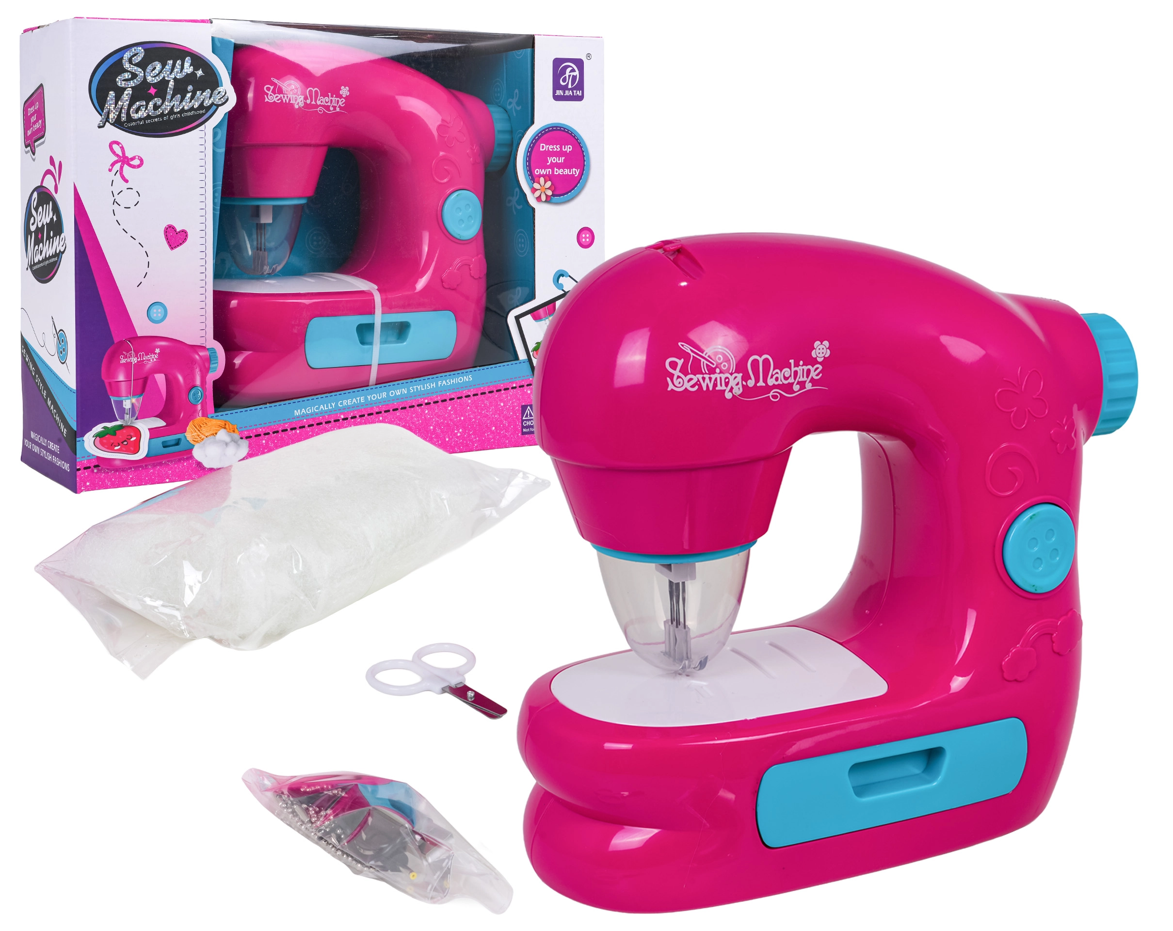 De kindernaaimachine is ontworpen voor veilig en speels leren naaien. Dankzij de ingebouwde naaldbeschermer, werklicht en realistische geluiden beleven kinderen een authentieke ervaring zonder risico op verwondingen. De bediening wordt vereenvoudigd door een schakelaar en een draaiknop voor het heffen van de naald; er is ook een ingebouwde lade voor kleine spulletjes.