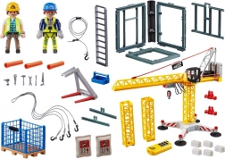 Op de drukke PLAYMOBIL‑bouwplaats is er werk van ’s ochtends vroeg tot ’s avonds laat. Ervaren arbeiders tillen met behulp van de kraan veilig stalen elementen en plaatsen ze precies op de juiste plek. Deze set stimuleert fijne motoriek, verbeeldingskracht en samen spelen, en biedt urenlang speelplezier.