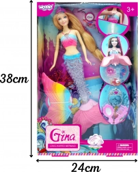 De zeemeerminpop WOOPIE Gina brengt kinderen naar een sprookjeswereld vol licht, muziek en fantasie. De regenboogkleurige beweegbare staart met roze vin, de kleurrijke top en het lange blonde haar nodigen uit om te kammen, vlechten en stylen. Ingebouwde licht- en muziekeffecten versterken de speelervaring en toveren de kamer om tot een onderwaterkoninkrijk.