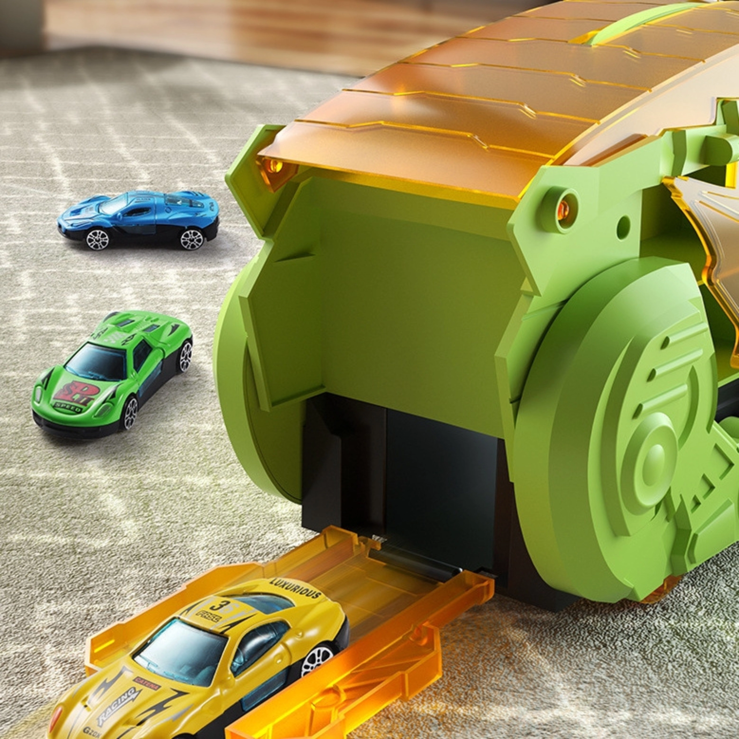 - 3-in-1: koffer voor autootjes, transporter en racebaan