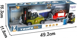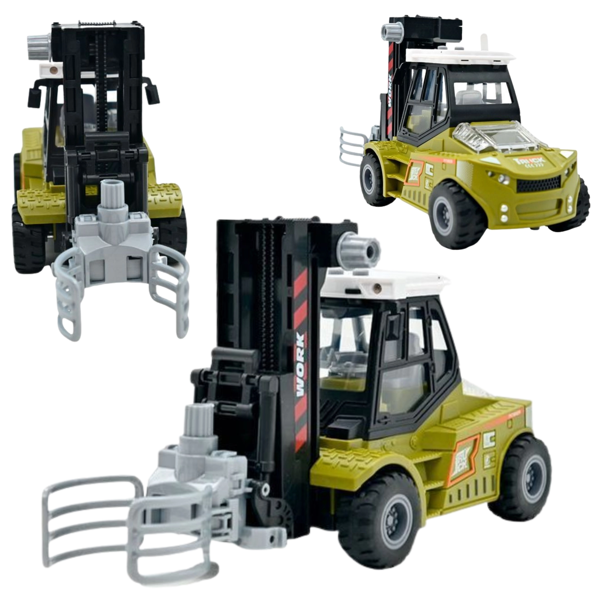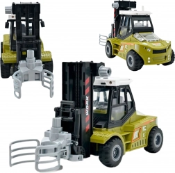 Het realistische model in schaal 1:43 zal kleine fans van bouw- en transportmachines verrassen. De heftruck heeft een traagheidaandrijving – een duwtje is genoeg en hij rijdt vooruit. De beweegbare arm met grijper maakt het mogelijk houten boomstammen op te tillen en te verplaatsen, terwijl de aanhanger met openende zijkanten het laden en lossen vergemakkelijkt.