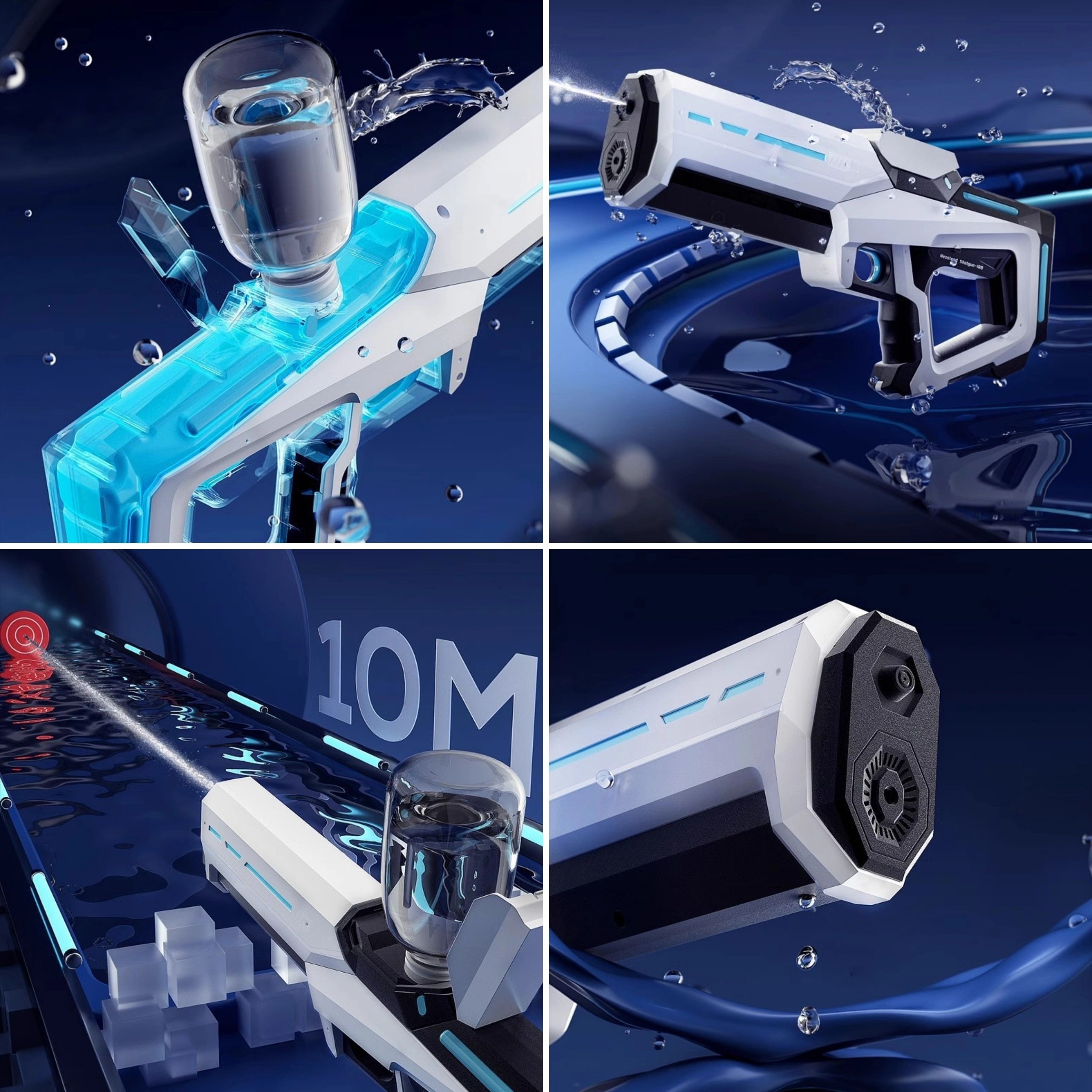 - Lange reikwijdte vergeleken met gewone waterpistolen