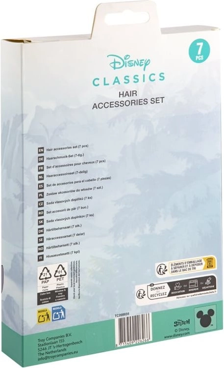 Een schattige set haaraccessoires met STITCH-motief zal alle kleine dametjes blij maken. Bevat een combinatie van elastiekjes, haarspeldjes, strikjes en een borstel voor gemakkelijk doorkammen. De accessoires zijn licht, makkelijk te gebruiken en stimuleren creativiteit en zelfstandigheid bij het stylen. Geschikt voor kinderen vanaf 3 jaar.