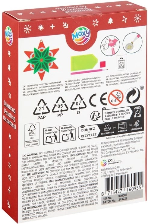 Maak je eigen sprankelende kerstdecoratie met de creatieve set van MOXY. De eenvoudige diamond painting techniek met genummerd patroon is makkelijk voor kinderen en volwassenen, stimuleert creativiteit en fijne motoriek en levert een stralende ster op die je boom, krans en interieur siert.