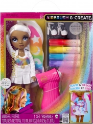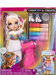 De Rainbow High-pop in een witte outfit en met wit haar dient als het perfecte canvas voor jonge modeontwerpers. Met het airbrush-hulpmiddel en de uitwasbare stiften in de kleuren rood, geel, blauw en paars kunnen kinderen unieke designs creëren van top tot teen. Na het spelen was je de kleuren eenvoudig uit en kun je weer opnieuw beginnen.