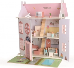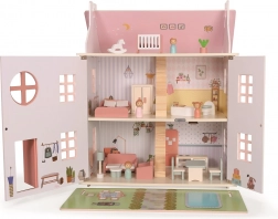 Dit tijdloze huis van hoogwaardig hout zal zowel jonge vertellers als designliefhebbers bekoren. Dankzij de drie verdiepingen en de doordachte indeling van de kamers (keuken, badkamer, woonkamer, slaapkamer en kinderkamer op zolder) biedt het de ideale ruimte voor familieverhalen en alledaagse scènes.