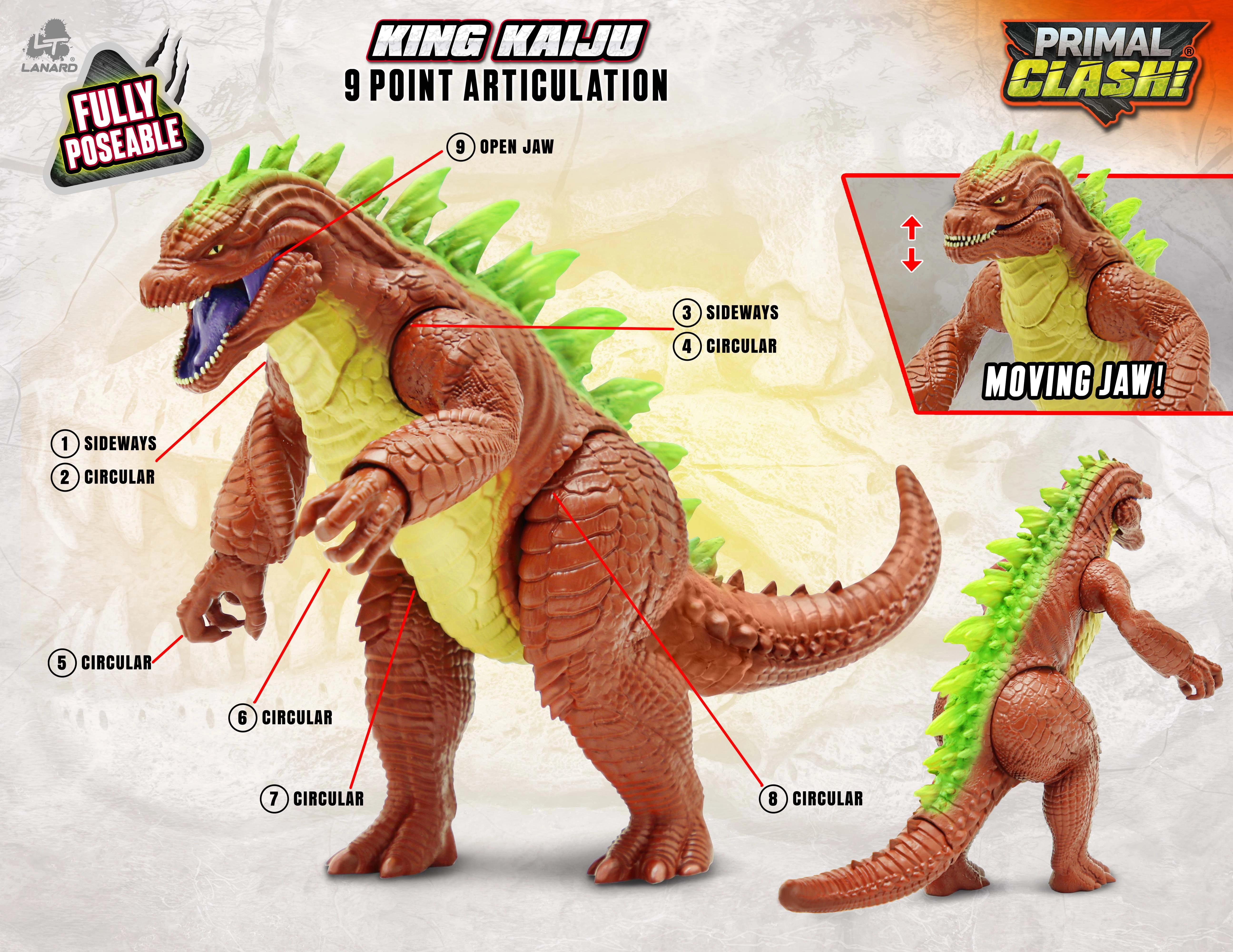 Betreed de wereld van reusachtige monsters met het King Kaiju-figuur uit de Primal Clash-serie. Dit gedetailleerd uitgewerkte speelgoed/decorstuk van 43 cm valt op door het markante ontwerp, de stabiele afwerking en de eenvoudige montage – de staart hoeft alleen maar vastgeklikt te worden.