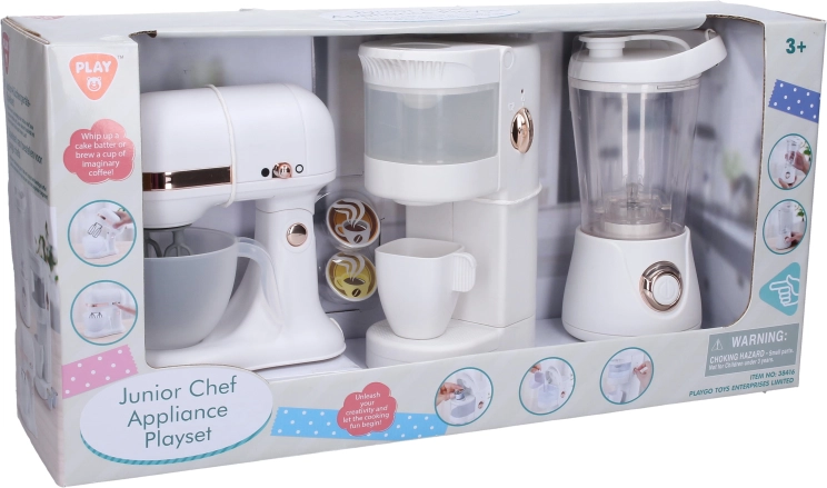 Deze 3-in-1 set van PLAYGO is ideaal voor kleine chefs. Kinderen genieten van het zetten van “koffie” met het koffiezetapparaat met echte watertank, het mixen van drankjes in de blender en het kloppen met de keukenmachine. Rollenspellen rond het huishouden ontwikkelen fijne motoriek, creativiteit en sociale vaardigheden.