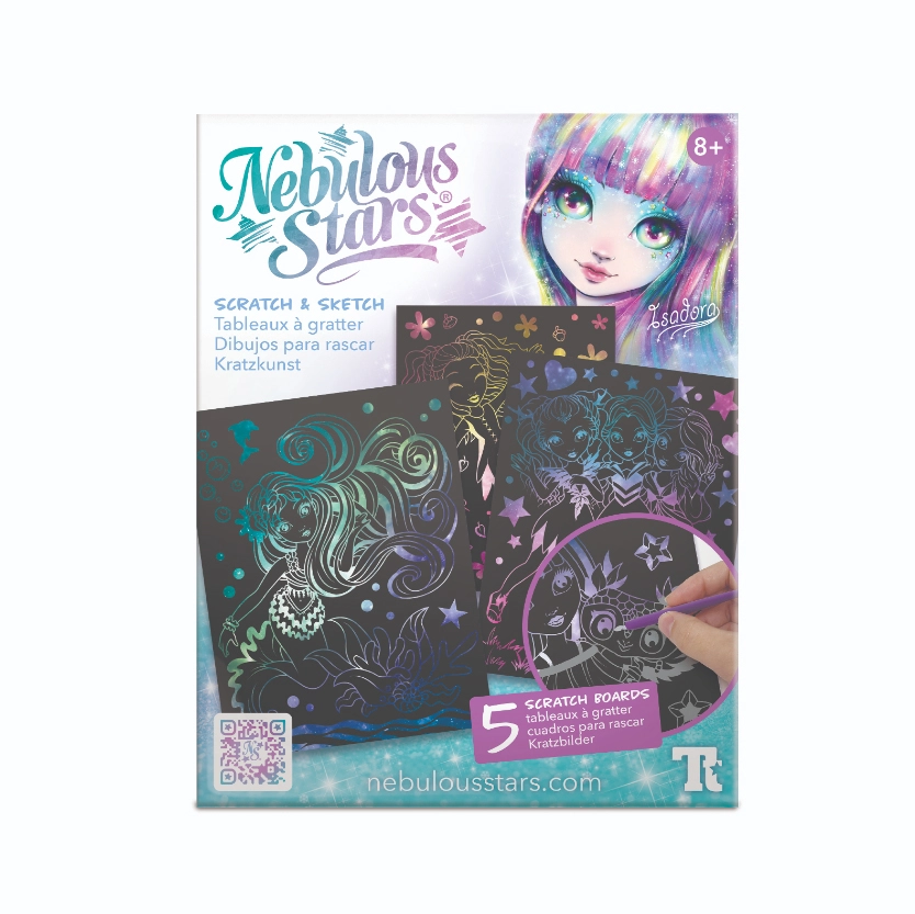 Ontdek de betoverende wereld van NEBULOUS STARS met een creatieve set die zowel jonge als oudere makers zal bekoren. De set bevat 5 kraskaartjes, 2 tools, 21 sjablonen en een handleiding met het verhaal van Isadora voor eindeloze fantasie en plezier.