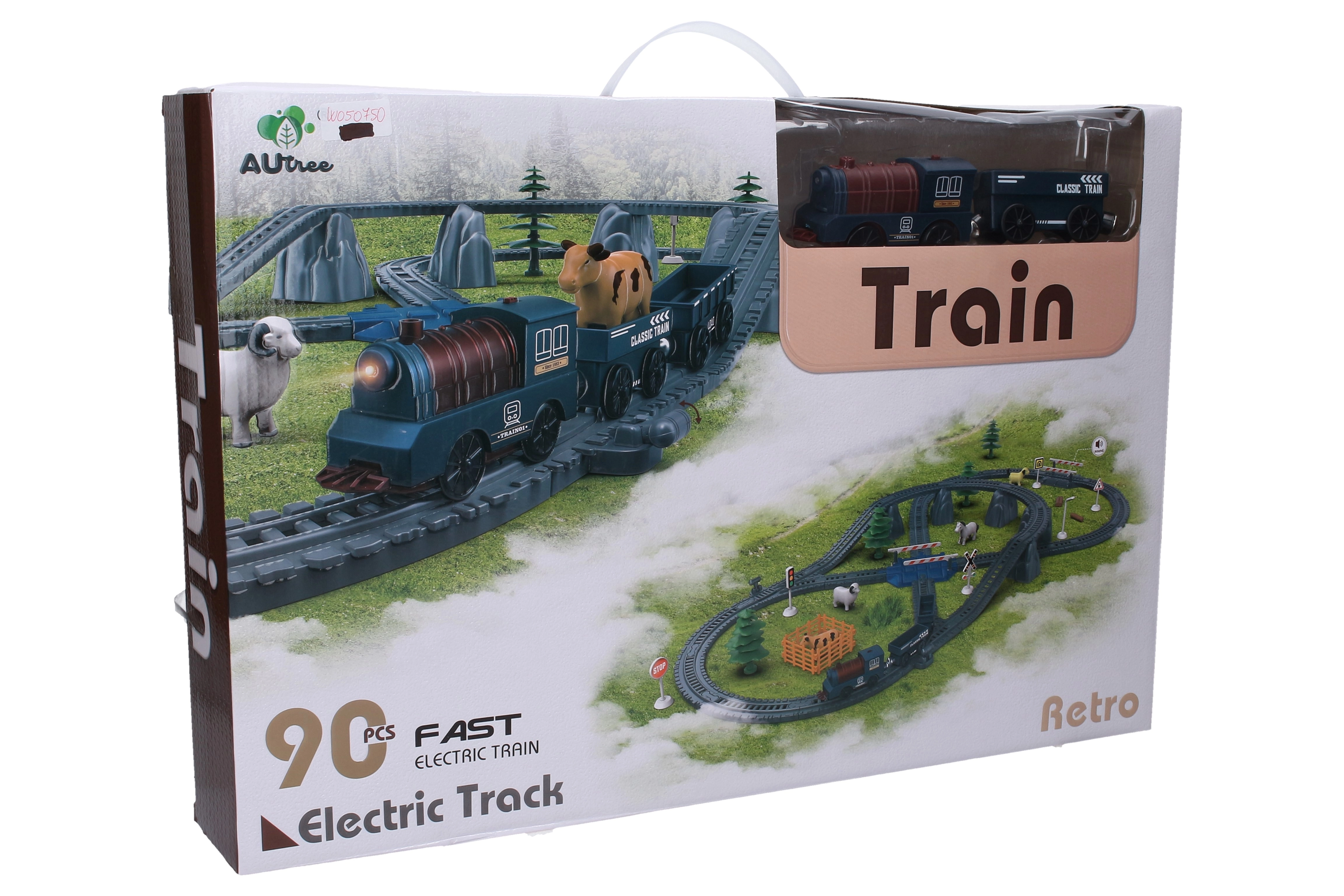 Een leuke treinbaan met afmetingen 112 × 61 × 7,5 cm die kleine treinfans zal verrassen. De set van 90 onderdelen biedt koppeling van treinstellen met magneten, geluidseffecten en eenvoudige bediening van de rijrichting via een schakelaar op de locomotief. Batterij 1× CR2032 (3 V) is inbegrepen, de locomotief vereist 1× AA (1,5 V) – niet inbegrepen.