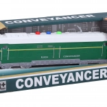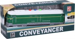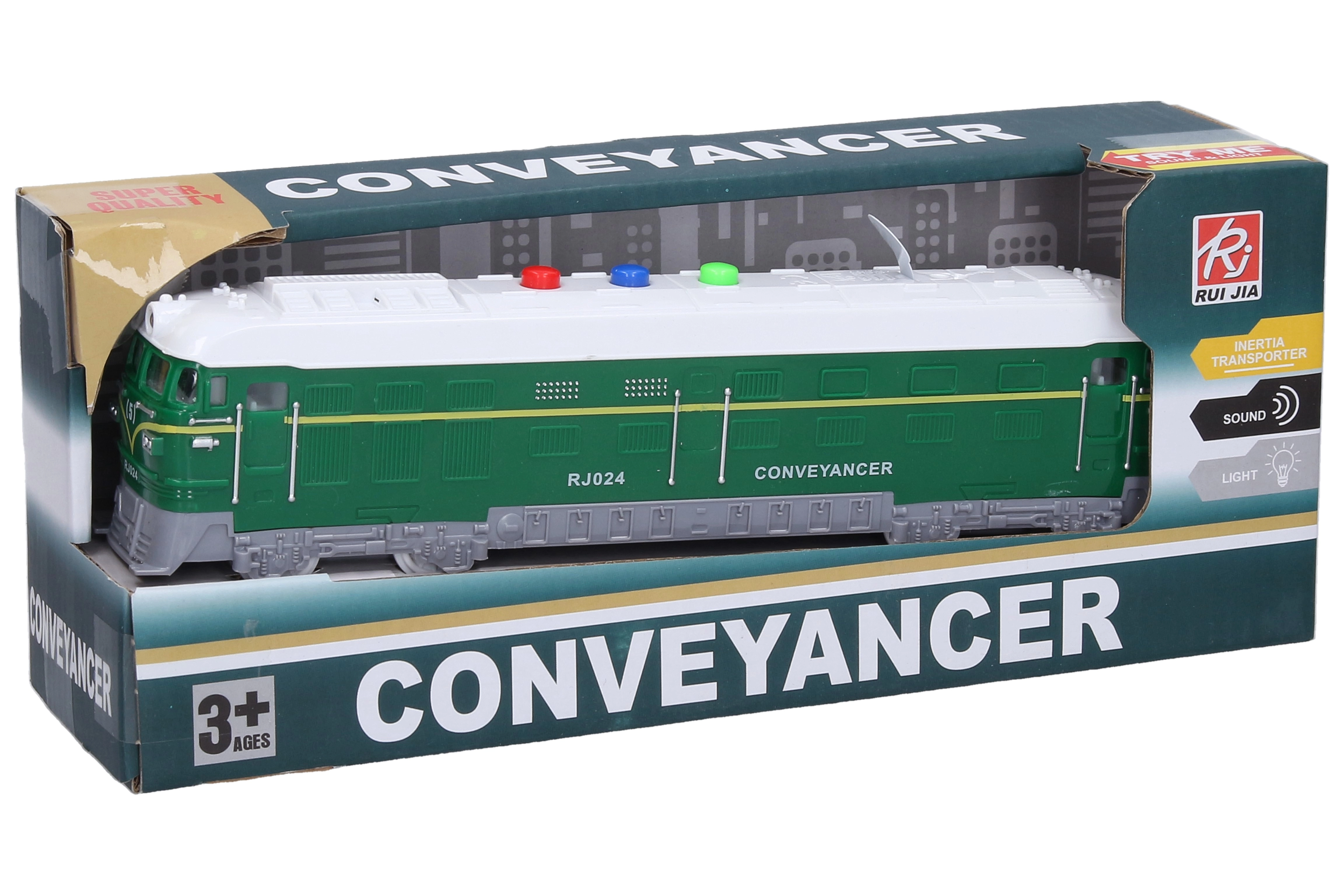 Een leuke trein met vliegwiel van 23 cm die kleine treinliefhebbers zal verrassen. Biedt licht- en geluidseffecten, eenvoudige bediening via knoppen op het dak en batterijen zijn bijgesloten.