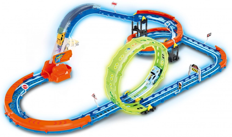 Geniet van een dynamische rit met een baan die opvalt door het lichtgevende autootje en compacte afmetingen die ideaal zijn voor de kinderkamer. De gemonteerde baan meet 88 × 27 × 48 cm en biedt een geweldige balans tussen plezier en ruimte.