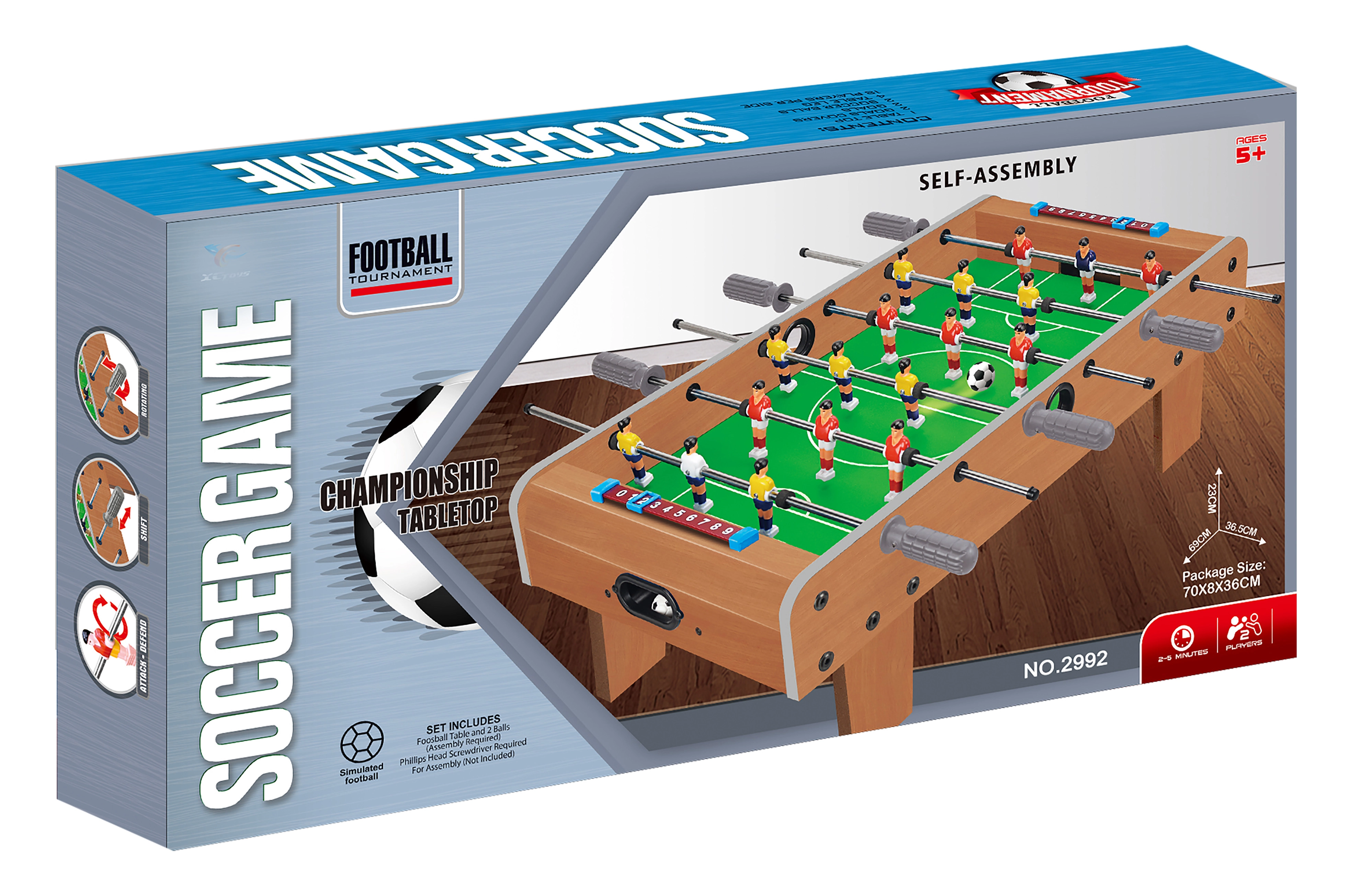 Geniet thuis van spannende duels met deze compacte tafelvoetbalset van 69 × 36,5 × 23 cm. Ideaal voor families en vrienden, biedt snelle fun en eenvoudige montage. In de verpakking vind je de tafel en 2 balletjes. Monteren is eenvoudig; je hebt alleen een kruiskopschroevendraaier nodig (niet inbegrepen).