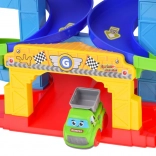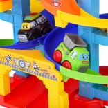 Kleurige spiraalracebaan met meerdere niveaus en twee schattige autootjes biedt uren speelplezier en ontwikkeling. Dankzij de eenvoudige montage en het veilige ontwerp genieten kinderen van het kijken hoe de autootjes over de gedraaide hellingen naar beneden zoeven. Inclusief 2 voertuigen (politie en kiepwagen), meerniveaus draaiende afdaling, startpoort en duurzame kunststof constructie, ideaal vanaf 18 maanden.