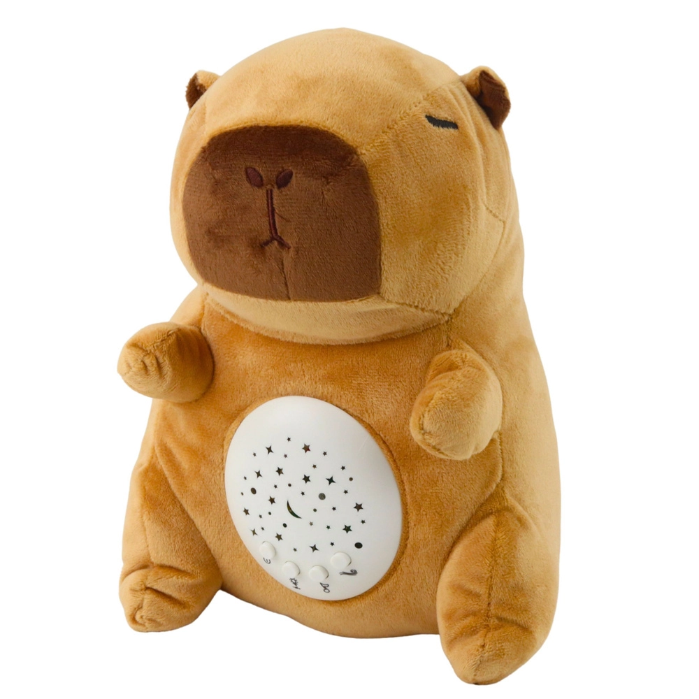 De pluchen capibara tovert op muren en plafond een sprookjesachtige projectie van sterren en maan, waarvan je de helderheid eenvoudig kunt aanpassen in drie stappen – van zacht gedimd licht tot een meer uitgesproken gloed. De geïntegreerde module speelt 8 rustgevende melodieën en natuurgeluiden af die ontspanning en sneller inslapen ondersteunen.