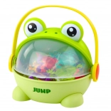 De praktische box biedt plaats aan alle onderdelen en heeft een handige draaglus, zodat je het spel gemakkelijk meeneemt op reis, naar grootouders of voor een picknick. Kleurrijke, vrolijke kikkers nodigen uit tot herhaald spelen en samen tijd doorbrengen.