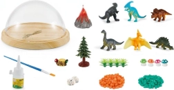 De set bevat 6 dinosaurusfiguren, een decoratieve vulkaan, planten en steentjes, waarmee kinderen eenvoudig hun eigen prehistorische wereld samenstellen. Het spel stimuleert creativiteit, verbeeldingskracht en fijne motoriek. Gemaakt van veilige materialen en geschikt voor kinderen vanaf 3 jaar.
