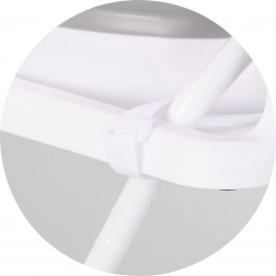 De metalen X-standaard tilt het badje naar een ergonomische hoogte, verhoogt de stabiliteit en ontziet de rug van ouders.