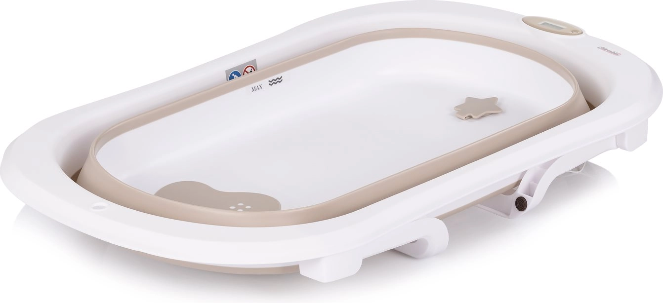 Geniet van rustig en comfortabel baden met het CHIPOLINO MALIBU badje in elegant beige. De opvouwbare constructie bespaart ruimte, de geïntegreerde thermometer helpt de ideale watertemperatuur te bewaken en de afvoer maakt snel leeglaten mogelijk zonder het badje te hoeven optillen. De stabiele X-standaard brengt het badje op een comfortabele hoogte en ontziet de rug van ouders.