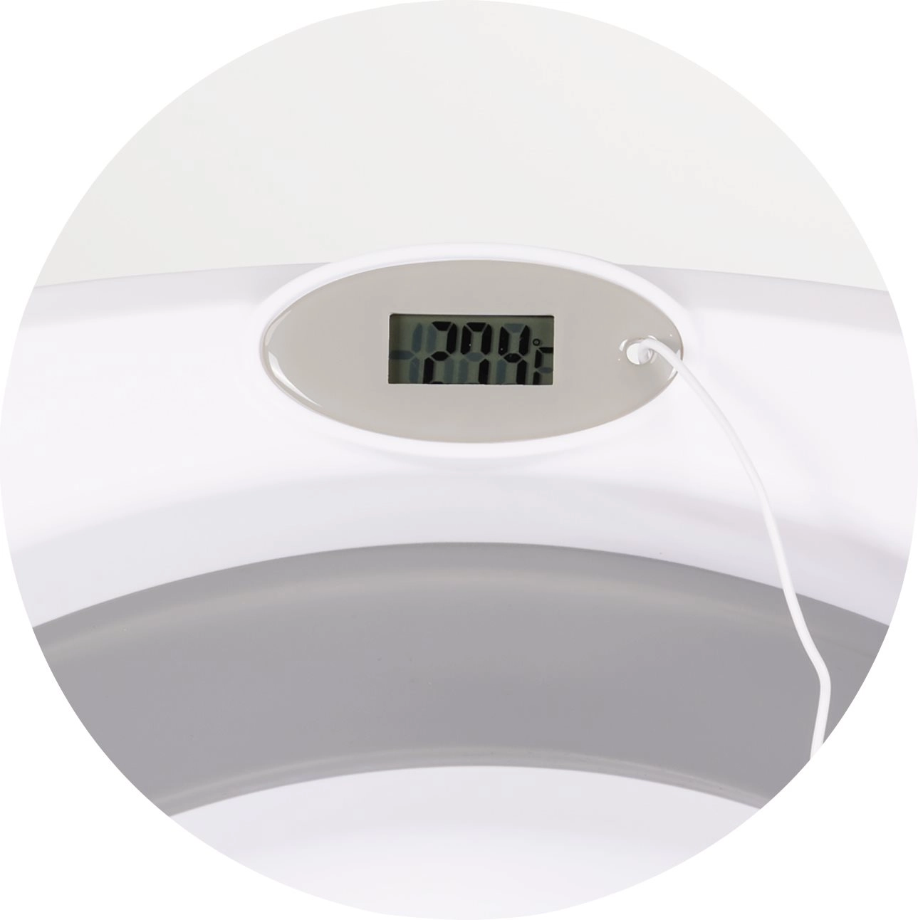 De geïntegreerde digitale thermometer maakt snelle controle van de ideale temperatuur voor de gevoelige babyhuid mogelijk.