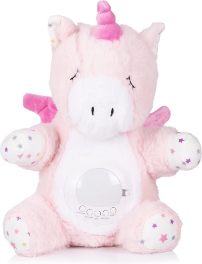 De pluchen CHIPOLINO-eenhoorn is een zachte metgezel voor in het bedje die je kindje kalmeert met zacht licht en natuurlijke geluiden. Dankzij de combinatie van sterrenprojectie, nachtlampje en wiegeliedjes ontstaat een fijne sfeer voor een ongestoorde slaap.
