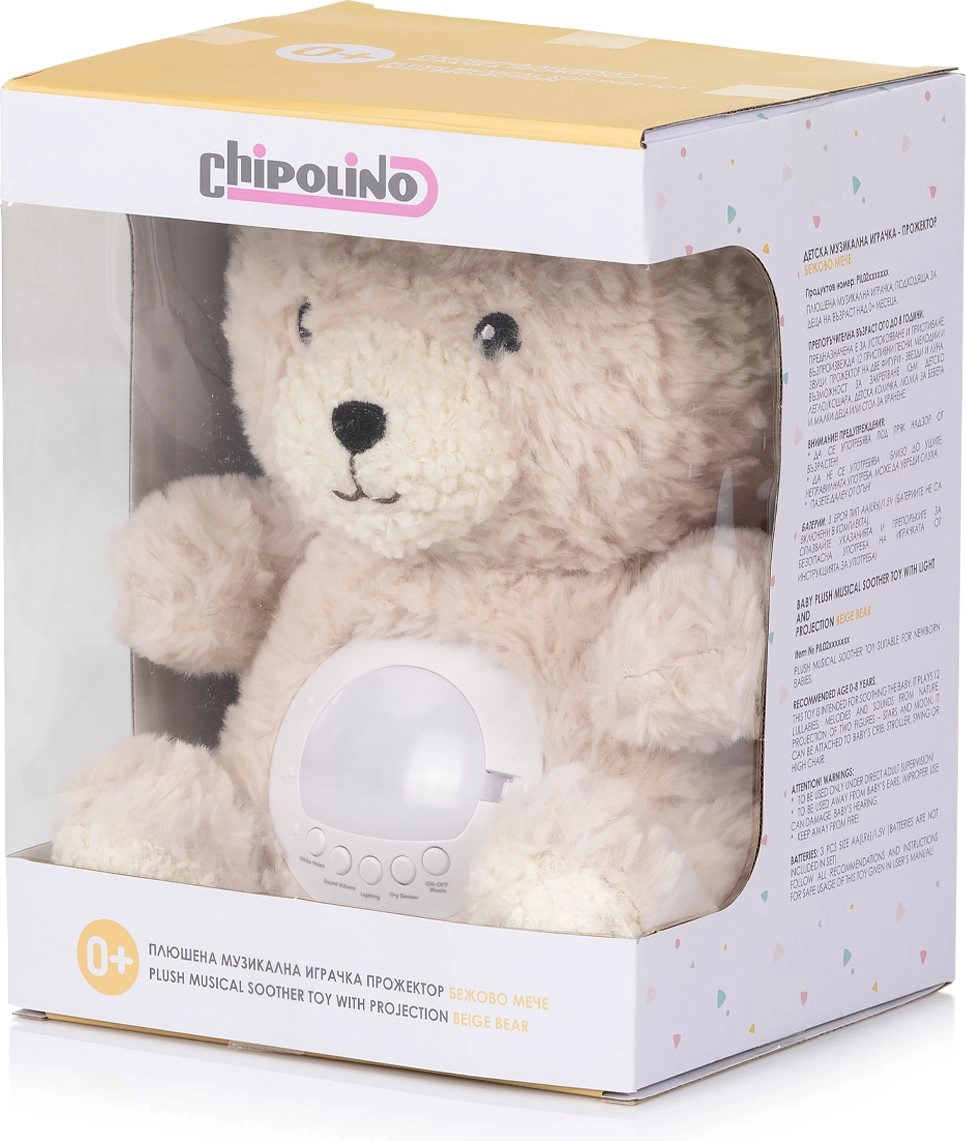 De pluchen teddybeer CHIPOLINO in beige is een zachte metgezel die kinderen helpt rustig in slaap te vallen. Hij combineert rustgevende geluiden, melodieën en subtiele lichteffecten die een aangename slaapomgeving creëren. Dankzij de huilsensor activeert hij zichzelf zodra het kind begint te huilen en biedt directe kalmering zonder jouw tussenkomst.