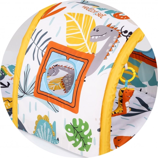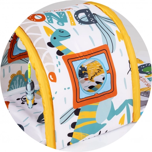 Dankzij de veilige en comfortabele uitvoering biedt het kleed een fijne plek om zowel op de buik als op de rug te spelen. Raampjes en details op de tunnel nodigen uit tot gluren en verstoppertje, wat nieuwsgierigheid en verbeeldingskracht ontwikkelt. Kleurrijke elementen en verschillende texturen zorgen voor rijke prikkels voor de zintuiglijke ontwikkeling en de eerste sociale interacties met ouders.