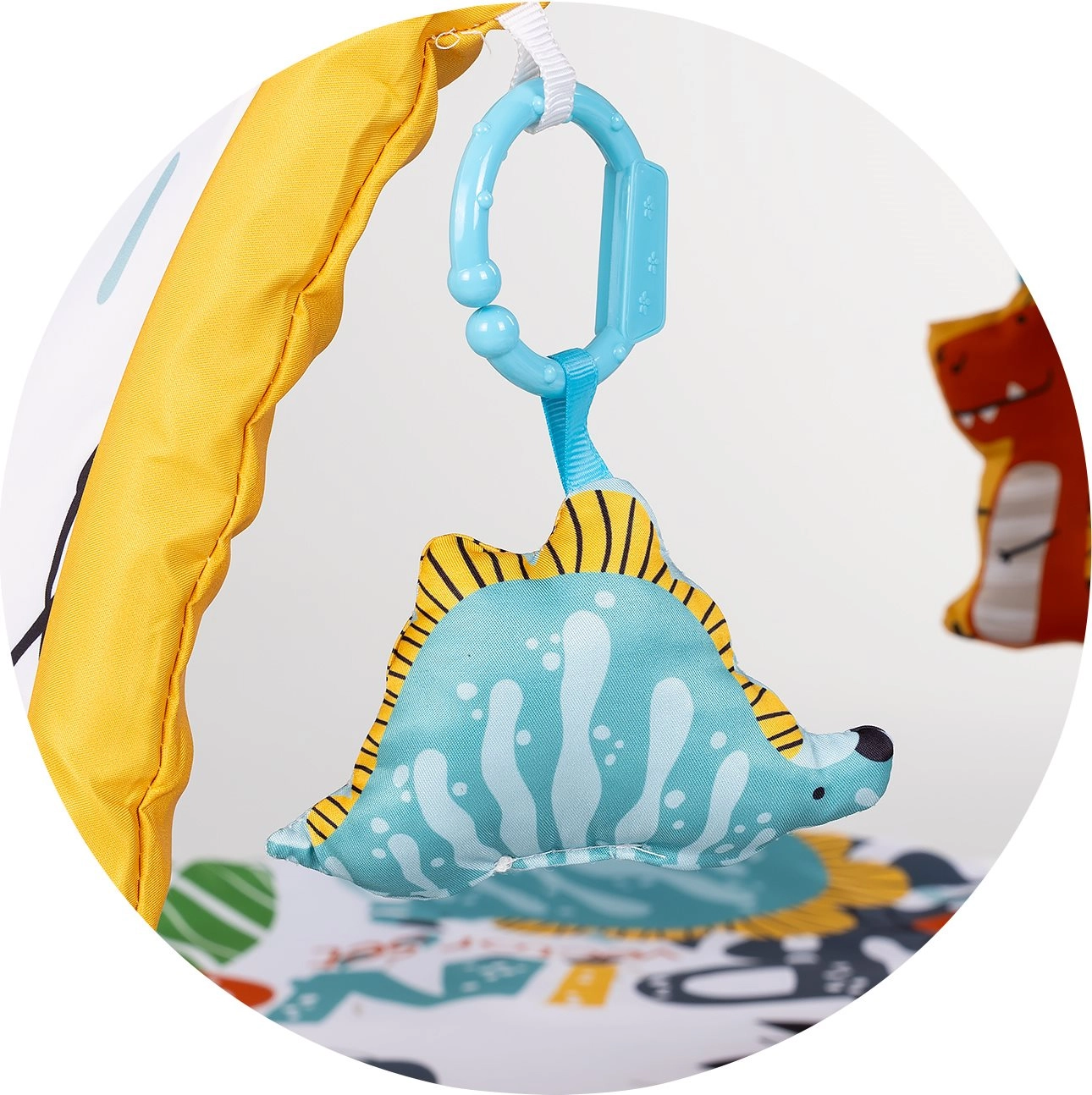 De gewatteerde mat met boog en hangende speeltjes motiveert je baby om te grijpen en versterkt de hand-oogcoördinatie.