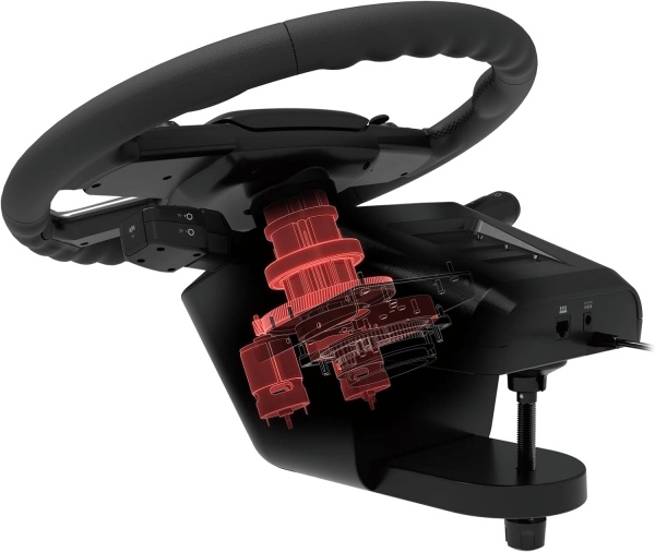 Het HORI Force Feedback Truck Control System voor pc is ontworpen voor maximaal realisme en comfort op lange ritten. Het stuur op ware grootte met kunstleren bekleding en 1800° rotatie simuleert een echte truck, terwijl de dubbele Force Feedback‑motor gewicht, tractie en wegdek nauwkeurig overbrengt. Geïntegreerde hendels voor verlichting en remmen, samen met een uitgebreide set knoppen, geven je directe en snelle controle over alle functies.