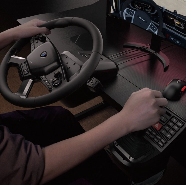 Ontwikkeld in samenwerking met SCS Software voor optimale compatibiliteit met ETS2 en ATS. De doos bevat Steam‑sleutels voor beide games – gewoon aansluiten, instellen en de open weg op.