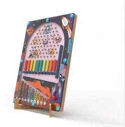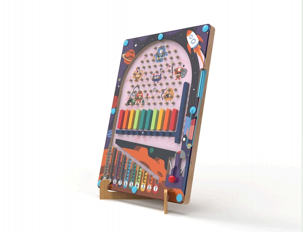Dit originele houten spel met ruimtelijk design combineert de actierijke fun van flipperen met slimme puntentelling via magnetische knikkers. Met de afschieter proberen kinderen doelvakken te raken, de score bij te houden en hun inschatting en precisie te verbeteren. De overzichtelijke indeling van het speelveld maakt het evalueren van resultaten eenvoudig en motiveert tot nieuwe pogingen.