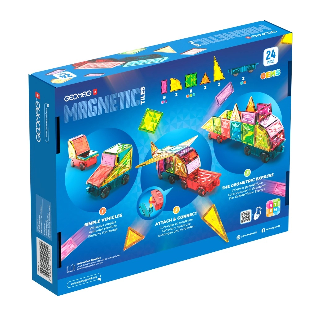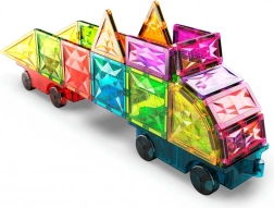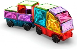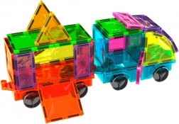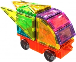 Deze kleurrijke bouwset biedt open-ended spel en eindeloze bouwmogelijkheden. Geïntegreerde magneten aan alle zijden van de vormen zorgen voor eenvoudig en stabiel koppelen, zodat kinderen snel eigen auto’s, aanhangers en originele 3D-constructies kunnen maken. Het spel stimuleert natuurlijk het ruimtelijk inzicht, het herkennen van kleuren en geometrische vormen.