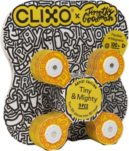 Ontdek de zakformaat kunsteditie Clixo Tiny & Mighty Artist Edition in samenwerking met maker TIMOTHY GOODMAN. Deze flexibele magnetische bouwset van duurzaam synthetisch papier biedt 9 lichte onderdelen met opvallende graphics, waarmee je tot 100 verschillende modellen bouwt. Dankzij de krachtige magneten en het 360° draaipatent behouden creaties stevig hun vorm en is spelen leuk thuis, in de klas en onderweg.