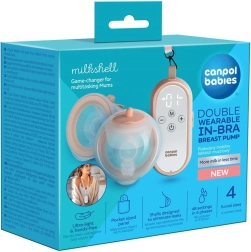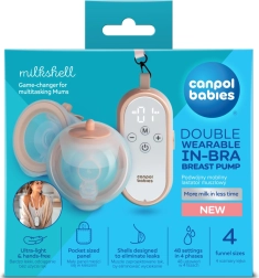 Canpol babies MilkShell is een moderne, dubbele draadloze kolf voor in de bh, ontworpen voor comfortabel, discreet en efficiënt kolven. De ultralichte opvangcups (180 ml per stuk) met een zachte trechter passen perfect in de bh, zodat je handsfree kunt kolven, thuis en onderweg. De bedieningsunit met overzichtelijke knoppen kun je dankzij het nekkoord om je nek dragen – alles is binnen handbereik en klaar voor gebruik.