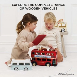 De speelgoedset is gemaakt van FSC-gecertificeerd hout en met de hand bijgewerkt met milieuvriendelijke verf op waterbasis. Veilig, duurzaam en ontworpen om sociale vaardigheden, communicatie en fantasie te stimuleren.