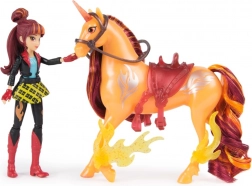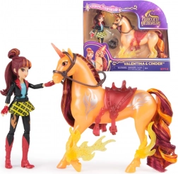 Ontdek de magie van vriendschap met de figuurset UNICORN ACADEMY Valentina en Cinder. De pop van 11,5 cm heeft 7 scharnierpunten voor dynamische poses, de eenhoorn Cinder (12,5 cm) heeft een gedetailleerde afwerking, metallic tekens van vuurmagië en magische accessoires. Dankzij het afneembare hoofdstel en zadel blijft Valentina stevig in het zadel zitten en met de meegeleverde borstel kun je de manen stylen.