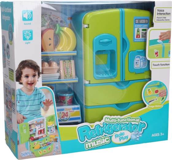 Deze kinderkoelkast met aanvullend rek en een set etenswaren is een geweldig speelgoed voor de ontwikkeling van sociale vaardigheden en creatief rollenspel in huis of winkel. Dankzij de realistische effecten ervaren kinderen een authentiek gevoel van het gebruik van een apparaat, terwijl de touchbediening het inschakelen van functies vereenvoudigt.