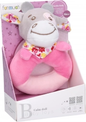 Deze pluchen rammelaar in ringvorm is ontworpen voor kleine kinderhandjes. Het lieve koetje van zacht materiaal biedt plezier voor zowel tast als gehoor. De lichte constructie maakt vasthouden eenvoudig en het zachte gerammel ondersteunt de waarneming van geluid.
