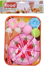 Leuke snijbare taartsset voor kleine koks met een diameter van 26 cm. Inclusief dienblad, taart, bestek en ander “eten” om mee te spelen. Ideaal voor rollenspel als feestje, ontwikkeling van motoriek en fantasie. Eenvoudig te hanteren, kindveilig ontwerp. Complete set, diameter 26 cm, veilig kinderaccessoire.