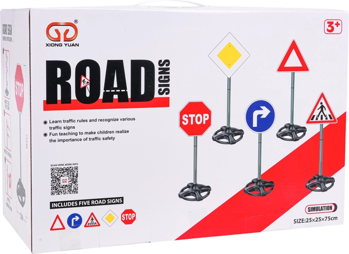 Ontdek een leuke en leerzame set voor kleine bestuurders: vijf grote verkeersborden met stevige voetstukken voor spel en onderwijs. Ideaal voor thuis, kinderdagverblijven en speelhoeken. De set is gemaakt van veilige, hoogwaardige materialen, helpt verkeersregels aan te leren en dankzij de stabiele voetstukken kan hij tegen een stootje.