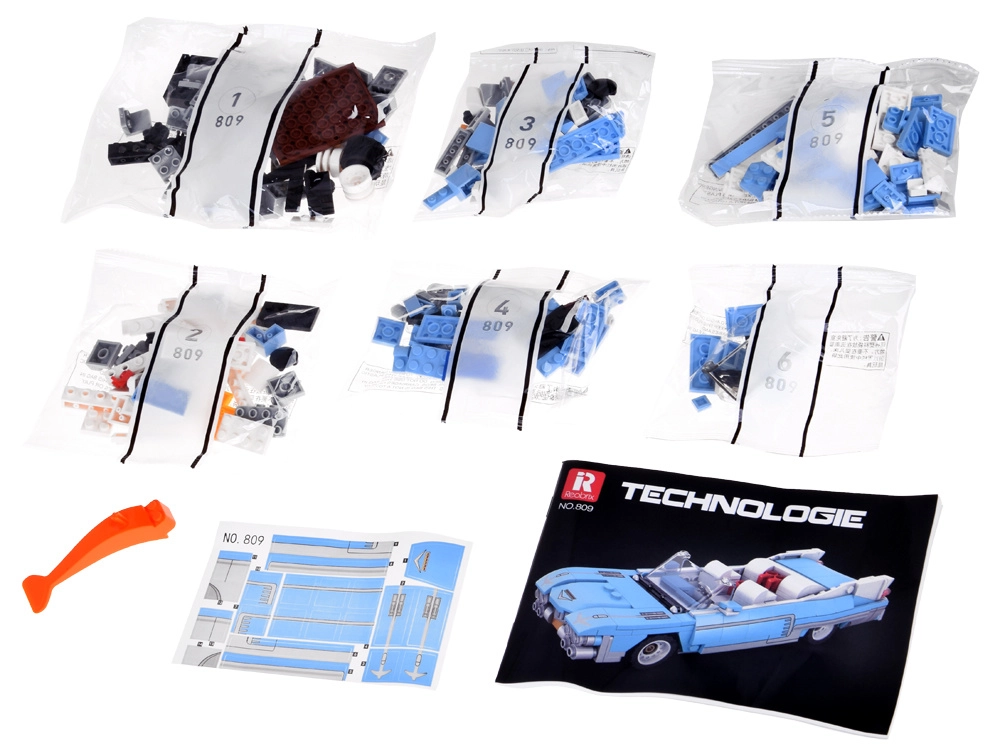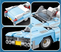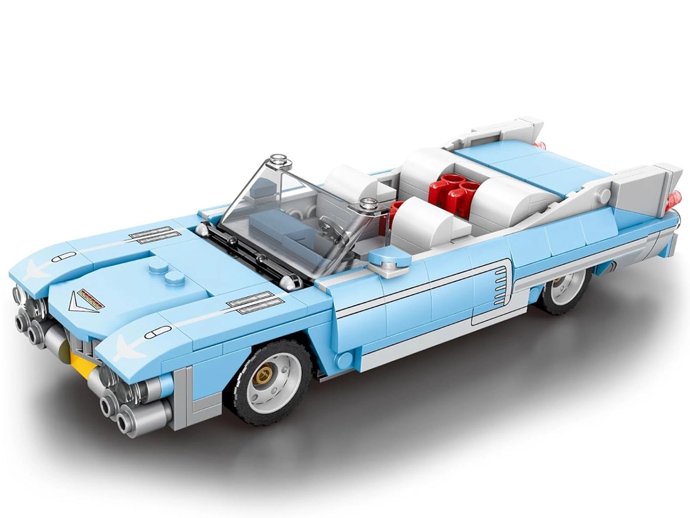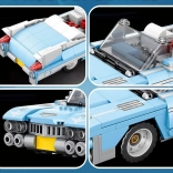 Bouw een iconische auto in de geest van de jaren 50: een blauwe cabriolet met lange motorkap, lage silhouet en chromen details. Met 308 onderdelen maak je een realistisch model met een elegant design, gemiddelde moeilijkheidsgraad en stabiele constructie – ideaal voor fans van technische bouwsets en klassieke autoresthetiek.