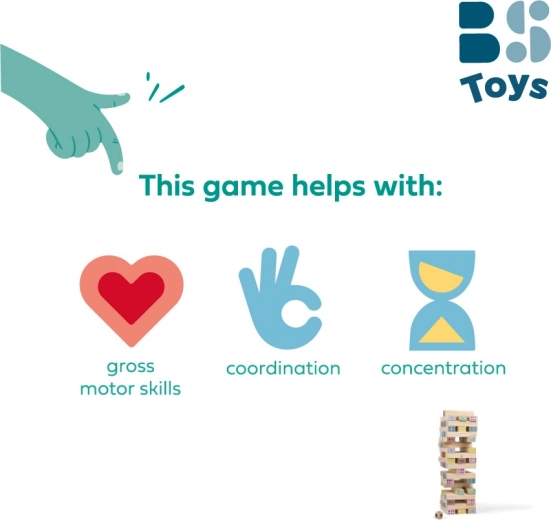 Een leuk vaardigheidsspel in Jenga-stijl voor 2–10 spelers vanaf 4 jaar, dat spanning combineert met het leren van cijfers. Spelers gooien met de dobbelsteen en nemen blokken weg volgens de worp – één blok, of twee waarvan de som overeenkomt met het aantal ogen. Het doel is de toren in evenwicht te houden en tegelijk rekenvaardigheden, motoriek, oog-handcoördinatie, concentratie en geduld te ontwikkelen.