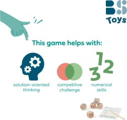Spelers oefenen rekenen, patroonherkenning en besluitvorming bij het kiezen van de beste combinaties. Stevige houten dobbelstenen en een praktisch scoreblok met potlood zorgen ervoor dat het spel meteen klaar is voor actie – thuis, op vakantie of onderweg.