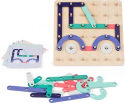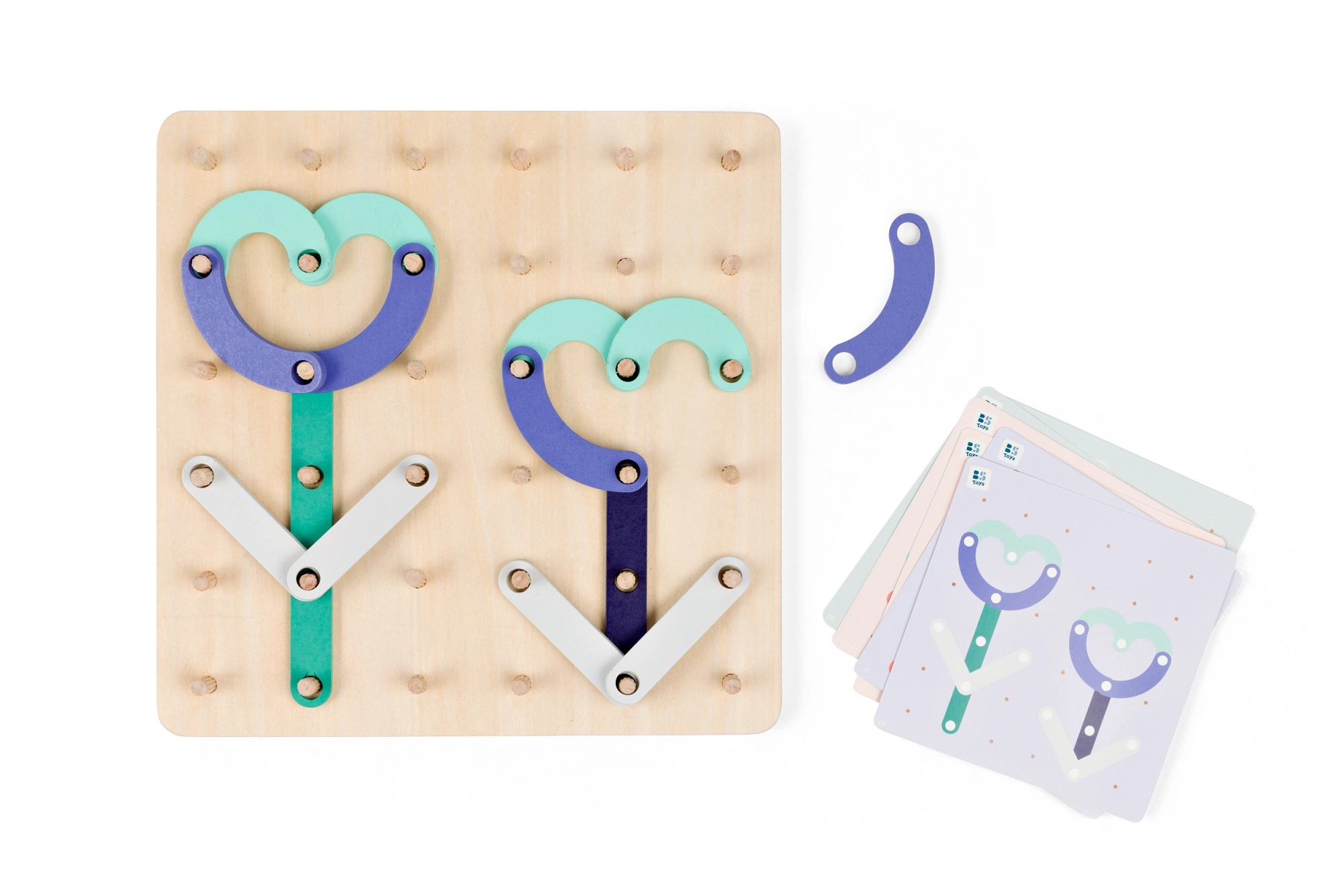 GEOPLANK is een creatief spel dat de natuurlijke nieuwsgierigheid van kinderen stimuleert. Met kleurrijke houten stukjes kunnen kinderen originele afbeeldingen maken, motieven van kaarten natekenen of hun eigen composities bedenken. Het spel ontwikkelt visuele waarneming, logisch denken en oog-handcoördinatie.