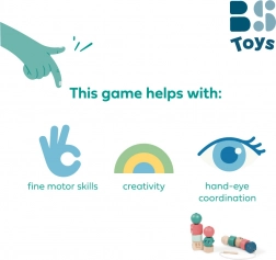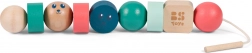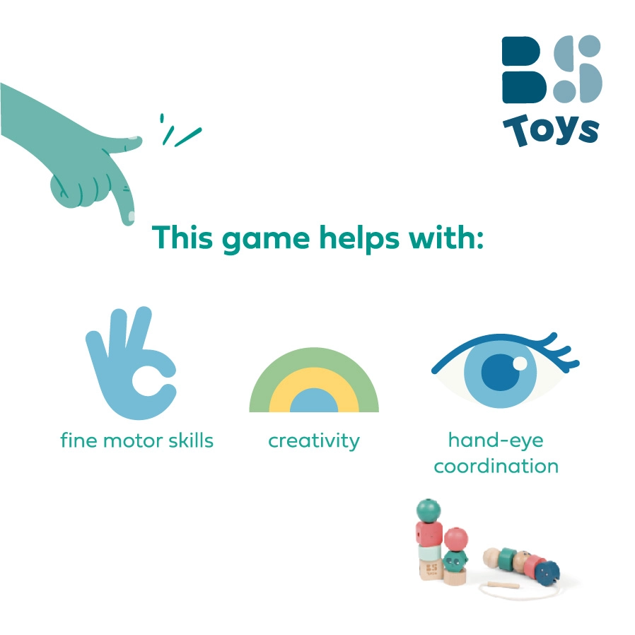 Ontdek een leuke motorische activiteit die kinderen op een natuurlijke manier helpt behendigheid en geduld te trainen. Grote houten kralen in verschillende vormen en kleuren zijn gemakkelijk vast te pakken en te rijgen aan een koord met houten uiteinden. Deze activiteit stimuleert de ontwikkeling van de fijne motoriek, de oog-handcoördinatie en het onderscheiden van kleuren.